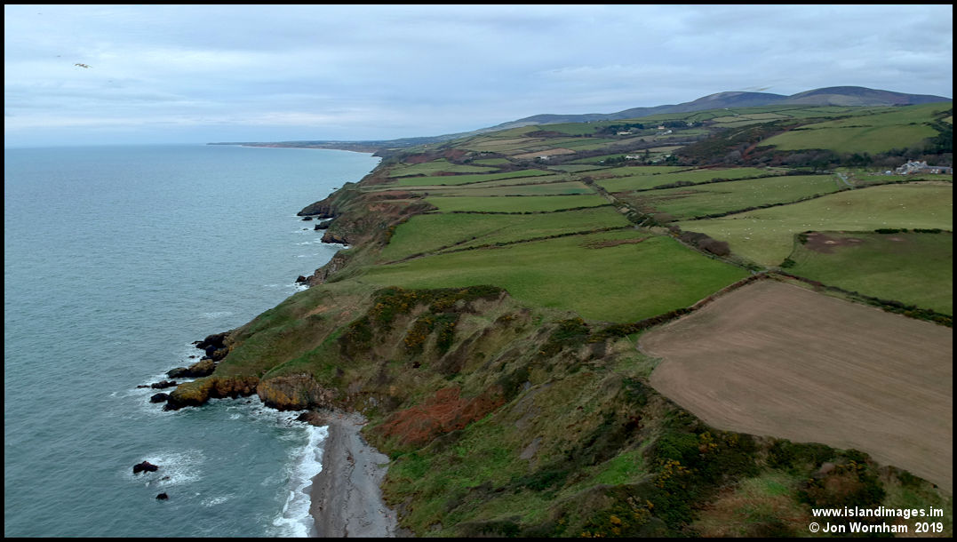 Looking to the north from overhead White Strand, with Jurby Head in the distance.