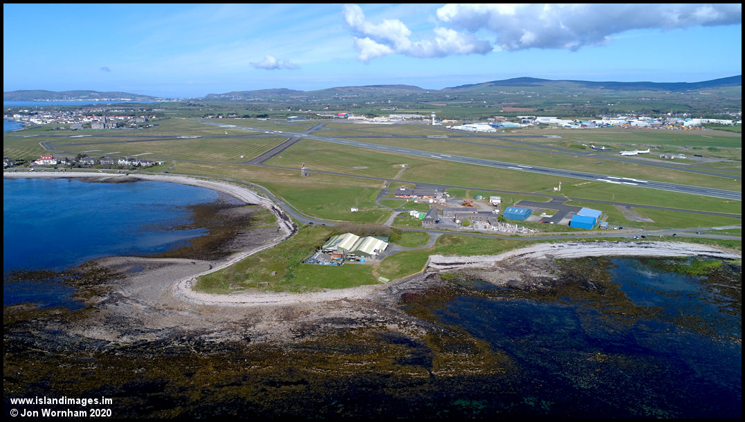 Swinging the camera round to the right to look across Ronaldsway Airport.