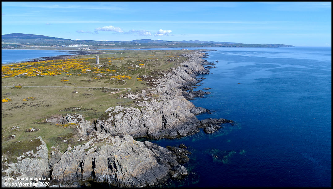 Looking along the rocky eastern coast of Langness towards the Herring Tower.