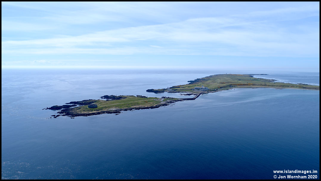 The view from over Derbyhaven Bay at just under 400 ft up, looking past Fort Island to Langness.