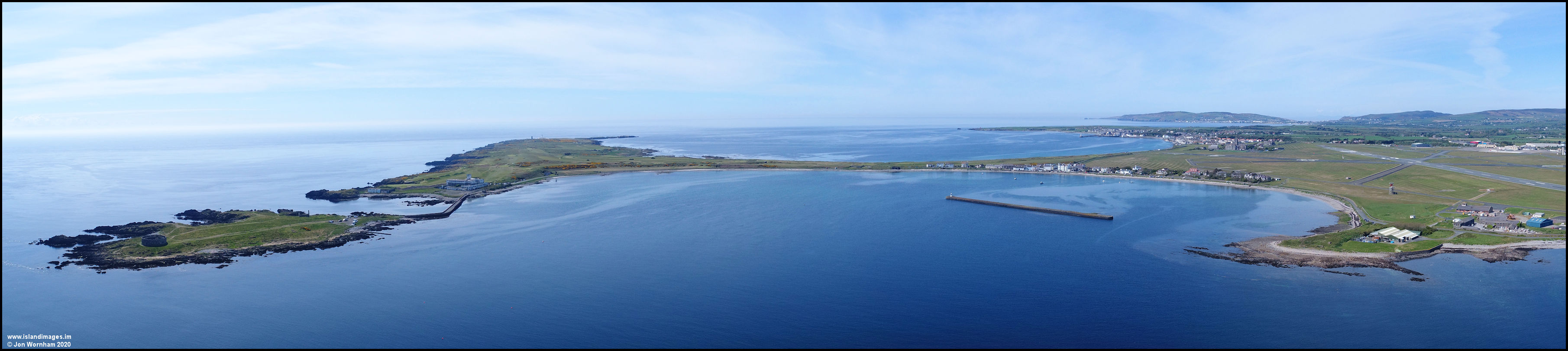 Panorama looking from Fort Island and Langness across Derbyhaven Bay.