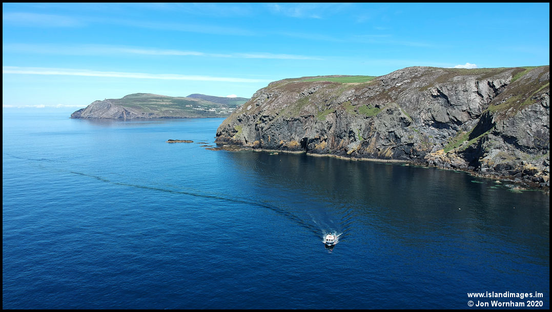 The boat heading across the bay is the 'Shona', based at Port Erin and running trips to the Calf of Man.