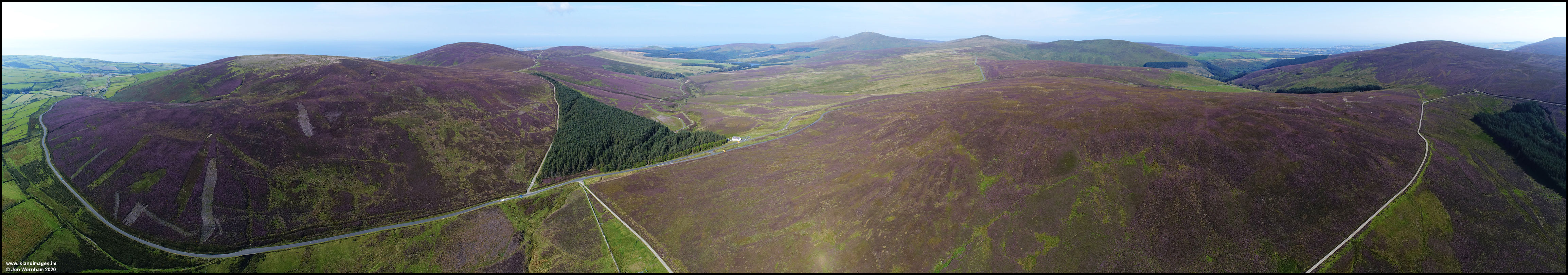 Panorama looking over Sartfell and Slieau Freoaghane, then past Slieau Maggle, with Colden on the right.