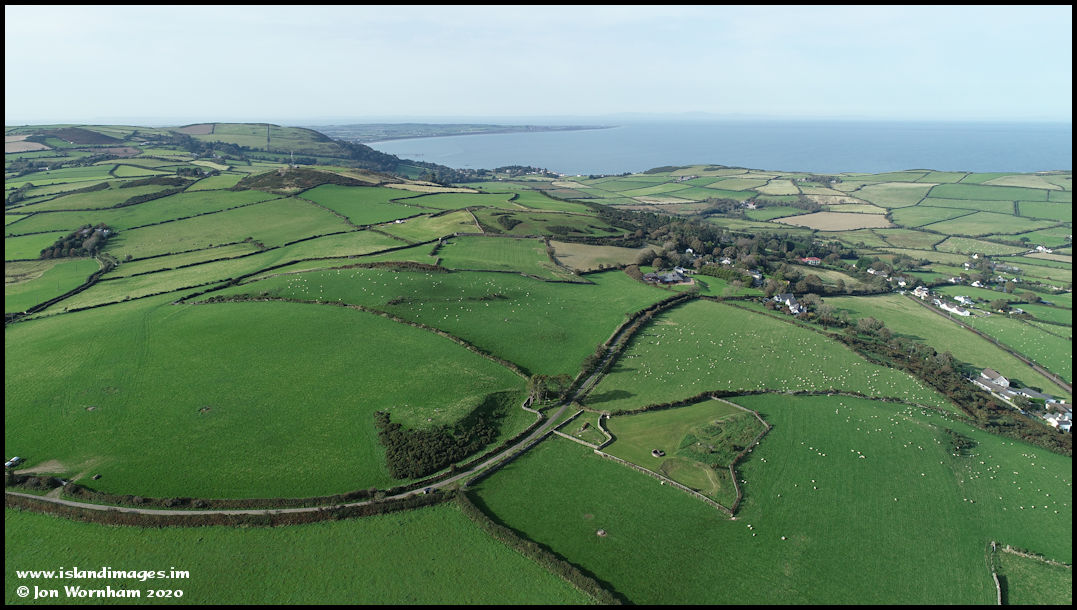 Looking north across Ballafayle. The town of Ramsey is hidden behind the hills, but beyond that the northern part of the island comes into view. The smudge on the horizon here is mountains in southern Scotland.