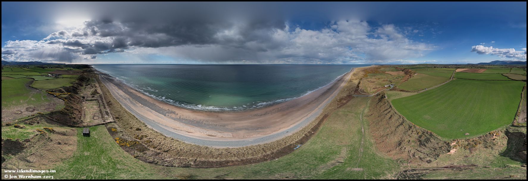 Panorama at Blue Point.  Despite the wide angle lens on the drone, the mountains of southern Scotland stand out well.  Less easily seen (but they are there if you look!) are the Cumbrian Mountains in England and the Mountains of Mourne in Ireland.