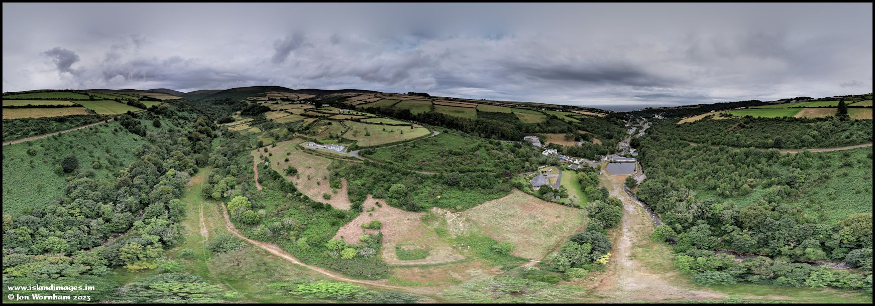 Aerial panorama at Laxey, shot from overhead the nature reserve.