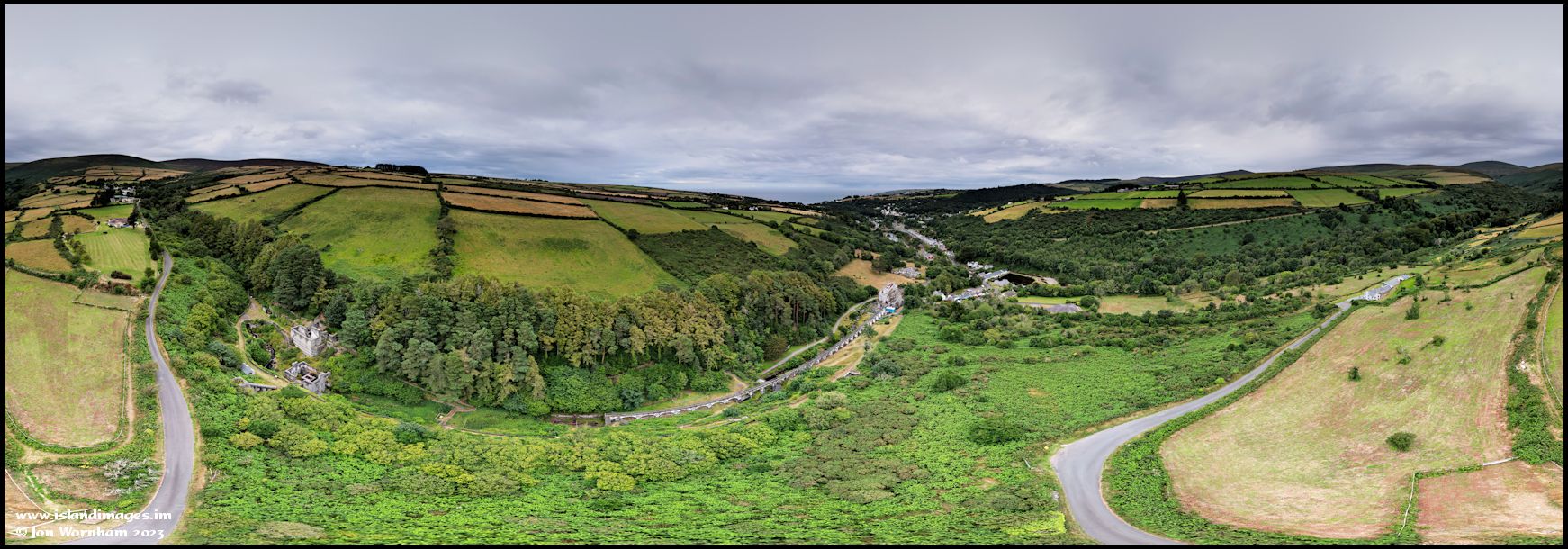The final aerial panorama at Laxey was shot from over the top end of the nature reserve. Most of the Great Laxey Mine buildings can be seen if you pan downwards.