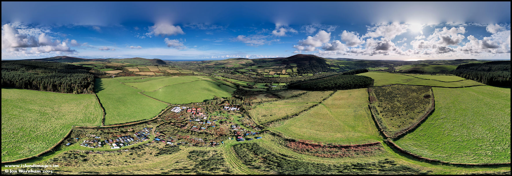 360 degree panorama of Archallagan Plantation and the central valley. Shot from overhead a graveyard for abandoned vehicles.