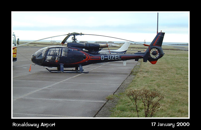 Locally based Gazelle, G-UZEL, parked on the west apron