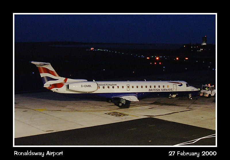 British Regional EMB145, G-EMBL, in the dark on stand 4