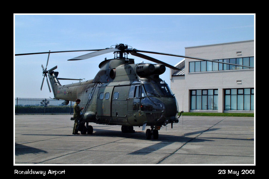 An unidentified RAF Puma on the west apron