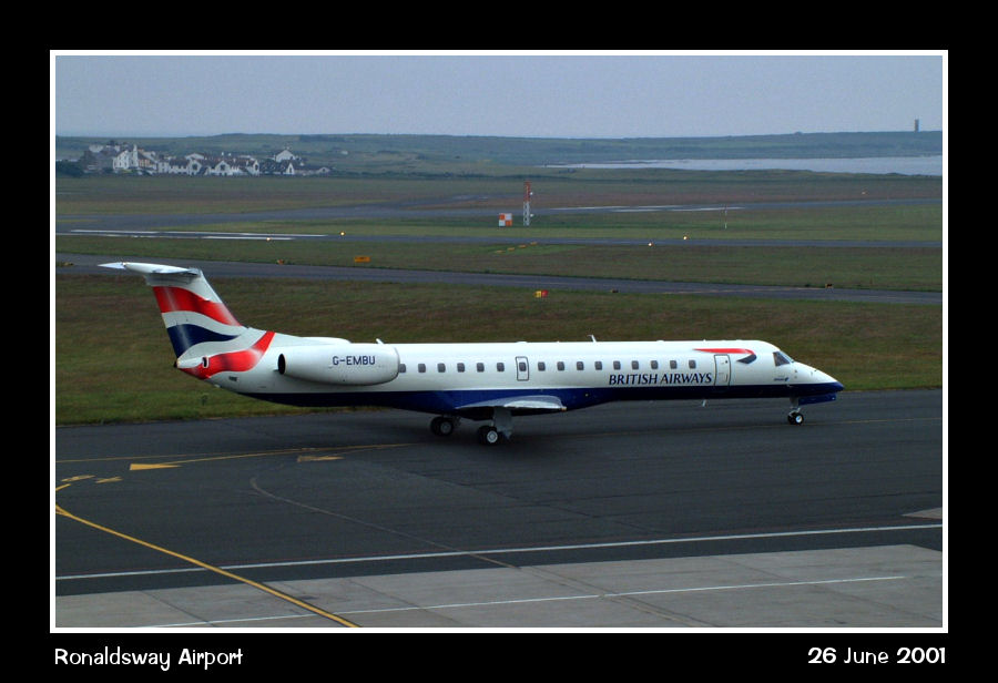 British Regional ERJ145, G-EMBU, taxies past the control tower