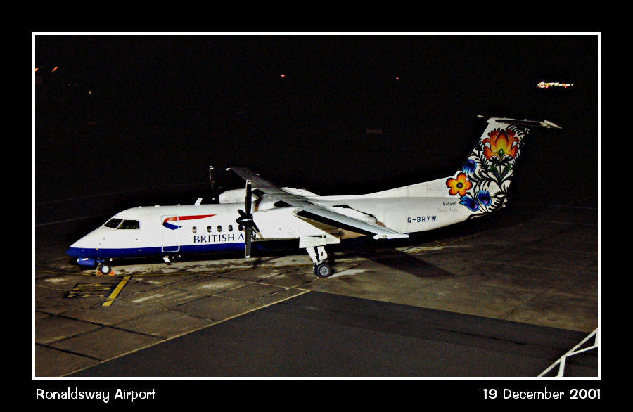 Another Brymon Dash8-300 at Ronaldsway, G-BRYW in the dark on stand 5
