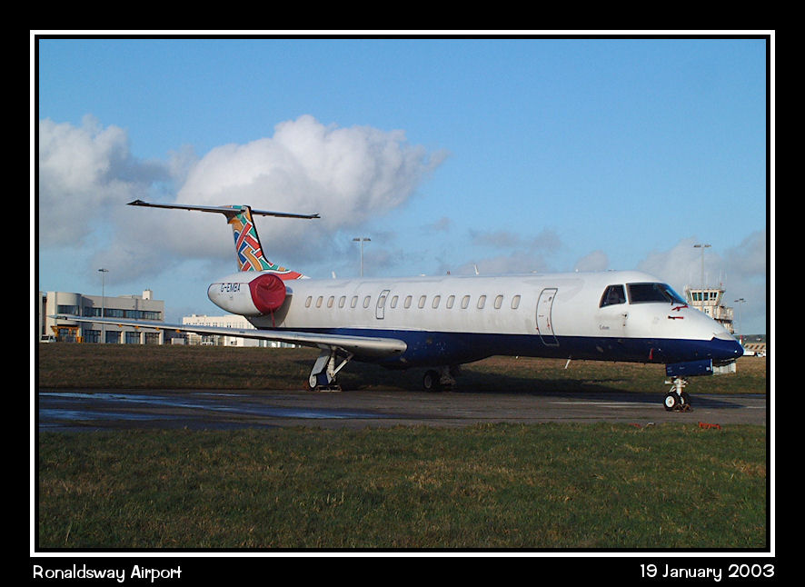 The first British Regional ERJ145, G-EMBA, in store at 'the helipad'