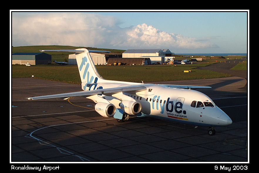 FlyBe Bae146-200, G-JEAW pulls onto stand in the evening light