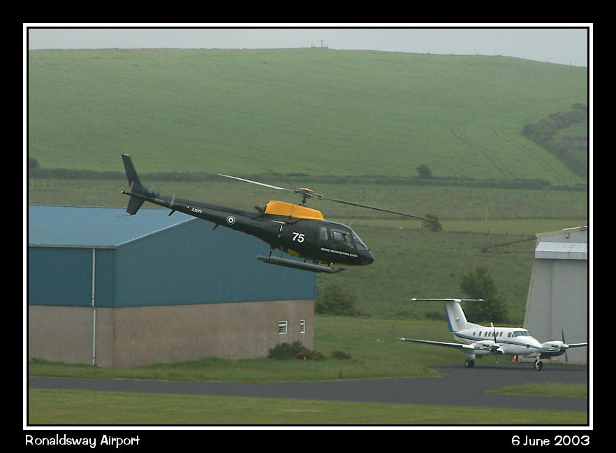 RAF DHS Squirrel HT1, ZJ275/75 transports the Red Arrows commentator to a display site
