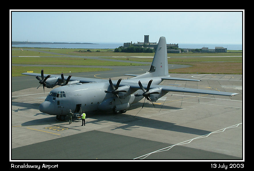 RAF C130J Hercules C5 ZH882 parked on the west apron