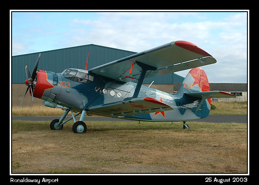 Antonov AN2 LY-MHC, parked on the grass by hanger one