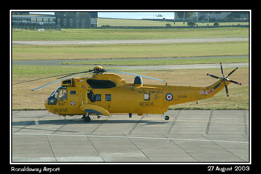 RAf 22 Sqn Sea King XZ588, which had earlier airlifted an injured fisherman from a boat to Noble's Hospital on the island