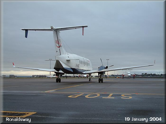 In a short lived experiment in 'nose out' parking on stand 2, EuroManx BE1900D, PH-RAT frames sister PH-RAR.