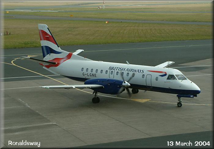 Scottish airline Loganair has returned to the island after a long absence, taking over the IOM-Glasgow route from the rapidly cutting back British Airways. Saab 340B, G-LGNE, parks on stand 4 after arriving from Glasgow.