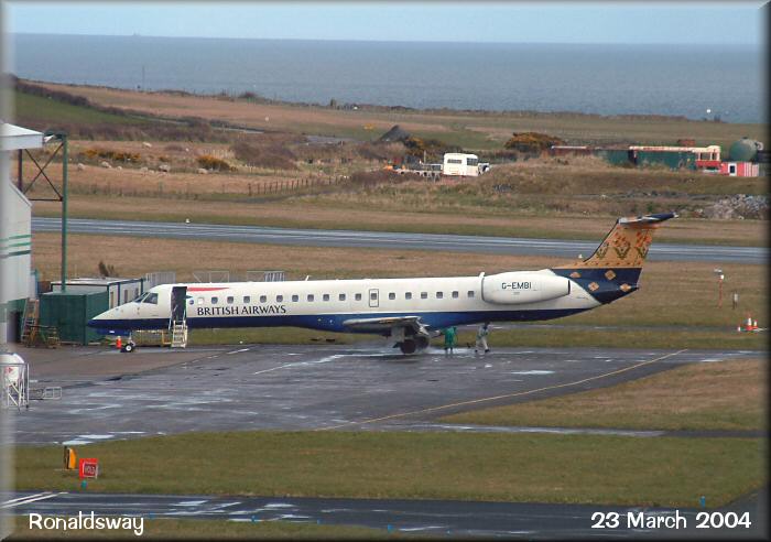 BA CitiExpress ERJ145, G-EMBI, awaits attention in the maintainance hanger.