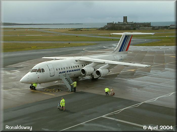 Air France liveried FlyBe BAe146-300, G-JEBA, arrives from Birmingham.