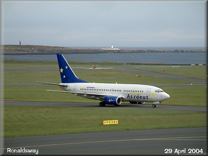 Astraeus B737-700, G-STRF, arrives empty to ferry a film crew back to London.