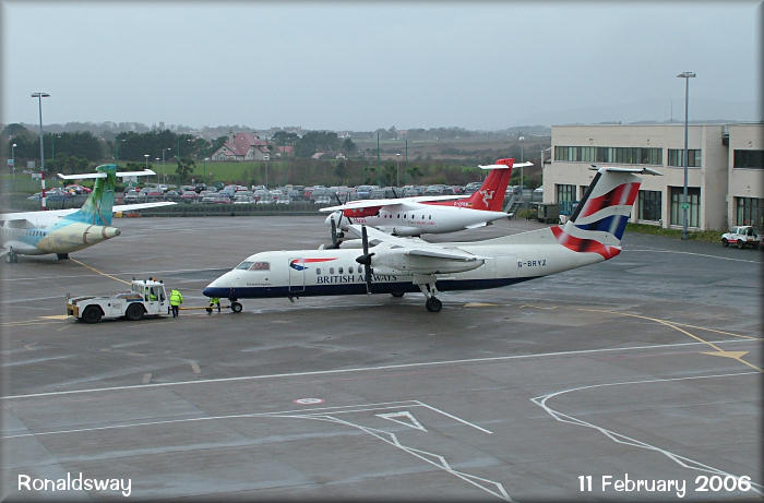 BA CitiExpress Dash8-300, G-BRYZ, has the tug disconnected after pushback for a Manchester service..