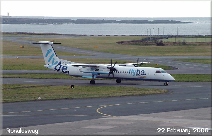 FlyBe Dash8-Q400, G-JECG, taxies after arriving from Birmingham.