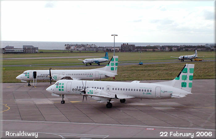 Emerald Airways ATPs, GJEMC & G-JEMA, both operating for EuroManx at the moment, with two of Emerald's HS748 freighters parked at 'Area Victor'.