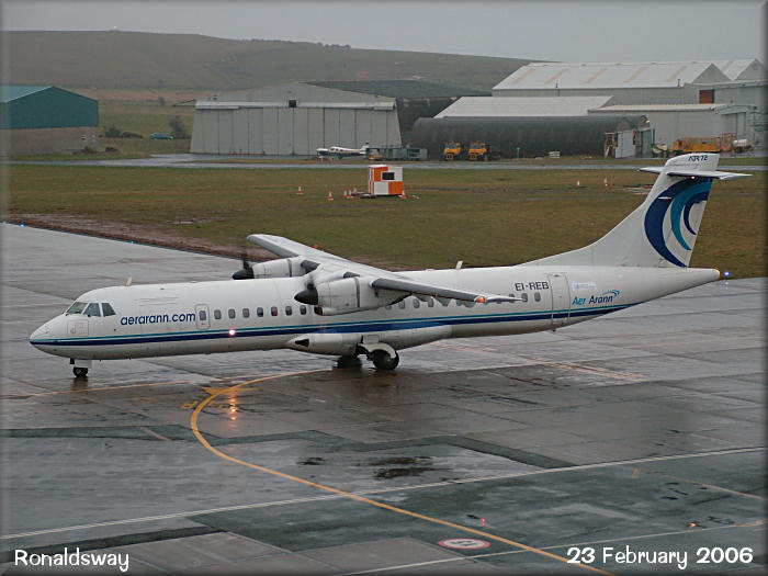 Aer Arann ATR72, EI-REB taxies onto stand from Dublin on a wet afternoon.