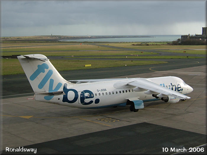 FlyBe BAe146-300, G-JEBB, parkes on stand 4 after arriving from Birmingham.