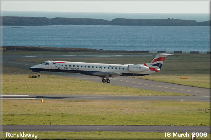 BA Connect ERJ145, G-EMBN, about to land from a test flight following maintainance.