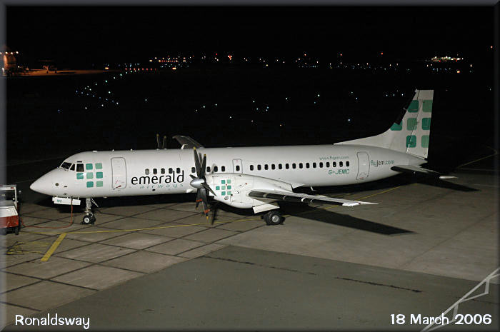 Emerald Airways ATP, G-JEMC, parked for the night on stand 5, after spending the day shuttling between the Isle of Man and Liverpool on EuroManx flights.