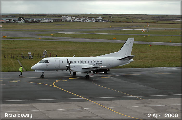 Loganair Saab 340, G-LGNK, parked on a taxiway.