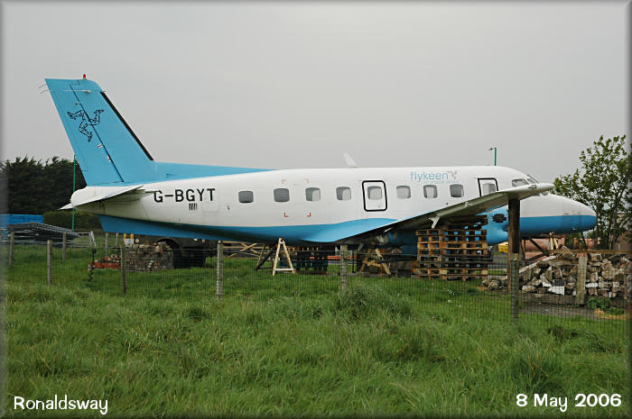 Former Keenair EMB110 Bandierante, G-BGYT, has now moved from the operational part of the airfield and resides in the museum, minus engines and undercarriage.