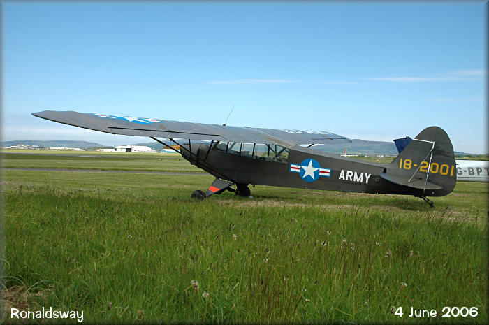 A visiting Piper Super Cub, in US Army WW2 colours as 18-2001.