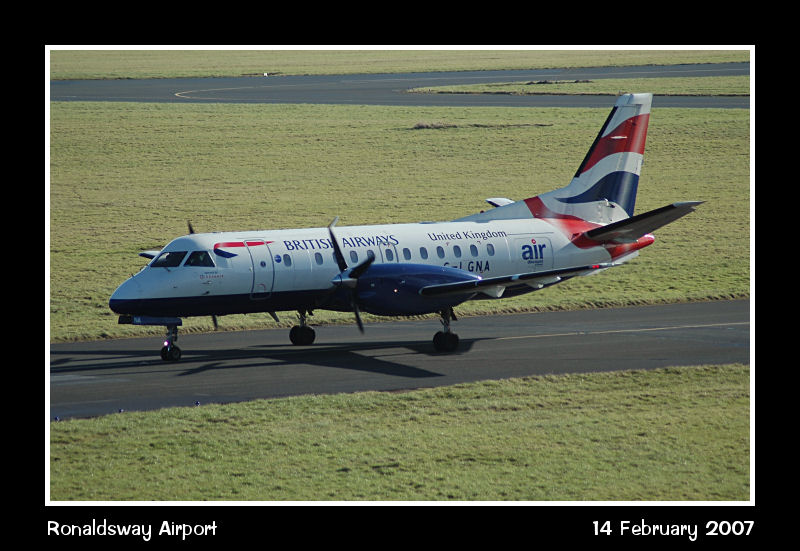 Loganair Saab 340B, G-LGNA, taxies in after arriving from Glasgow