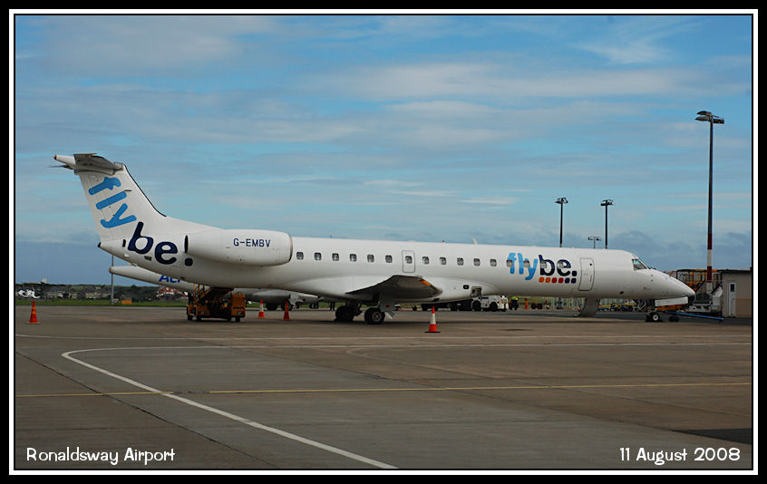 FlyBe ERJ145 G-EMBV, parked on the east apron