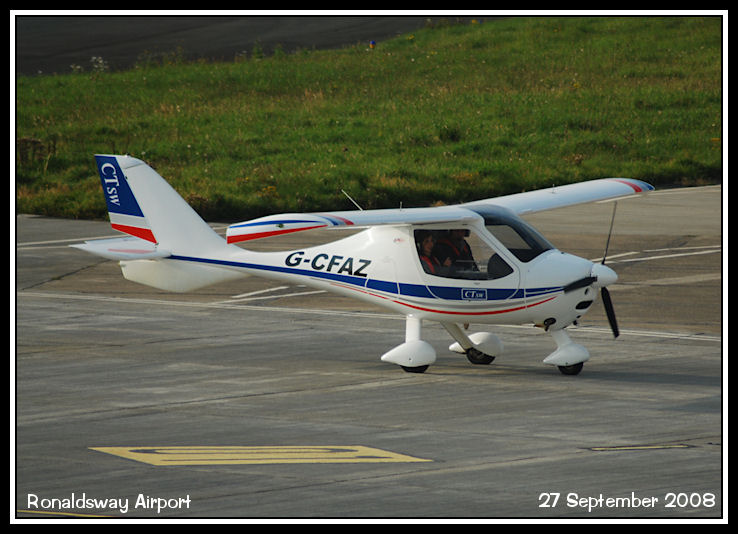 Flight Design CTsw microlight G-CFAZ taxies in after arriving from |Manchester Barton