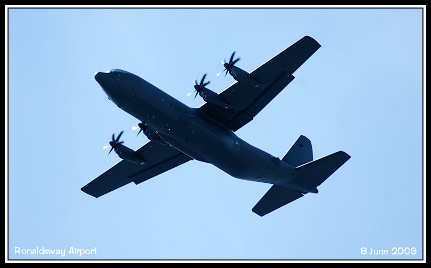 RAF Lyneham Wing C130J Hercules ZH867 flies over the airfield after an NDB/DME approach