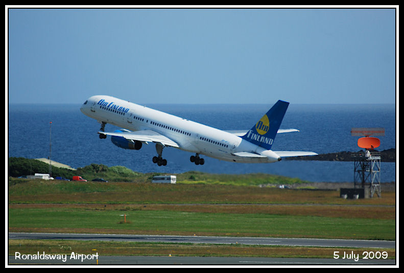 Air Finland Boeing 757 OH-AFJ departs on a positioning flight to Brize Norton