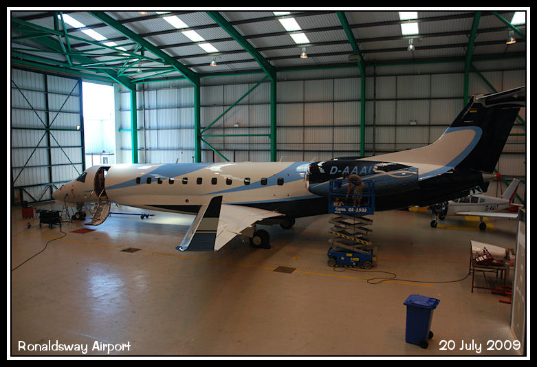 Embraer Legacy D-AAAI, in one of the hangers for transfer to the Manx register