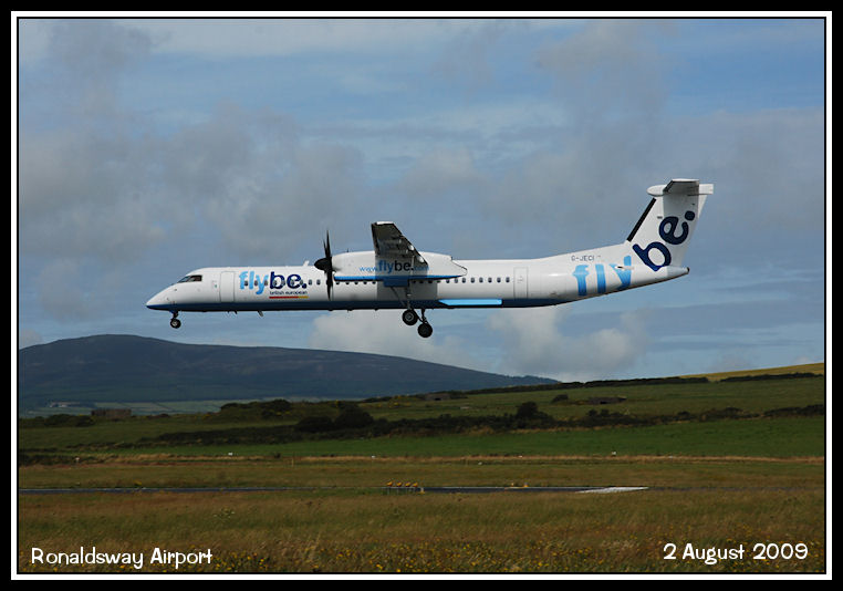 FlyBe Dash 8-Q400 G-JECI crosses the current end of runway 26 just before touchdown