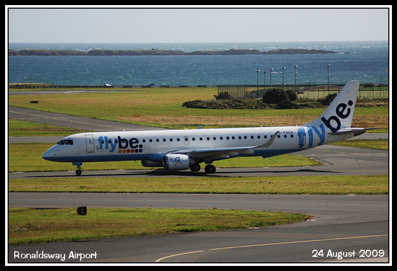 Making a change from the usual Q400s, FlyBe ERJ195 G-FBEB operating a Manchester service