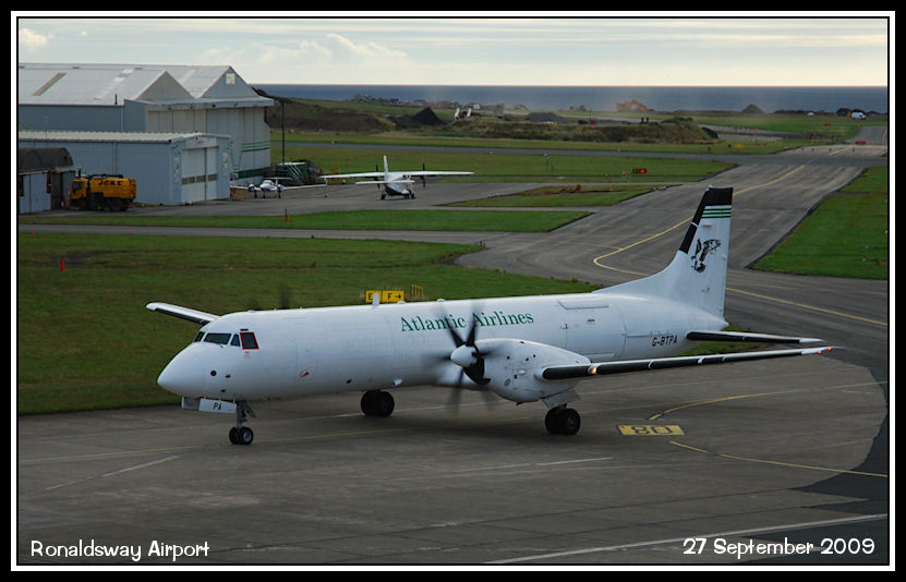 Atlantic Airlines ATP G-BTPA taxies after positioning in from Aberdeen