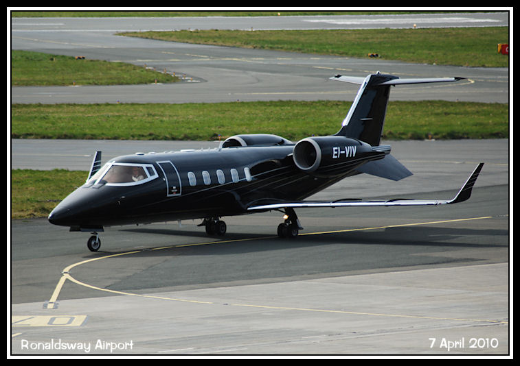 Learjet 60 EI-VIV taxies in - apparently to leave as M-IGOR