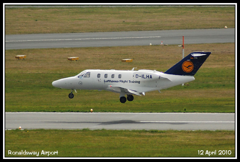 Lufthansa Flight Training CitationJet D-ILHA about to touch down on runway 08