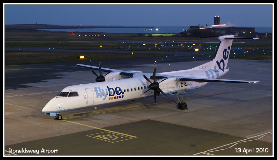 FlyBe Dash8-Q400 G-JECH under the apron floodlights at dusk